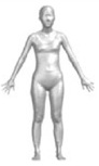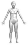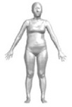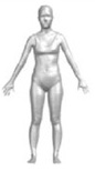 의복압 경계 추출을 위한 3차원 착의 데이터 획득은 3D CLO(Clo virtual fashion, Korea) 가상착의 프로그램을 사용하였다. 3D CLO는 의류 및 섬유 산업에서 널리 사용되는 3차원 가상착의 프로그램으로, 실제 의복과 유사한 물성과 착용감을 구현할 수 있다. 2D 의복 패턴에서 3D 아바타로의 실시간 수정이 쉬우며, 아바타 체형, 소재 물성, 봉제, 의복 여유량 등을 세부적으로 조절하여 실제 의복과 유사한 결과를 얻을 수 있어 효율적인 제품 개발이 가능하다. 앞서 언급한 사이즈 코리아에서 제공하는 20대 여성의 4가지 체형별 3D 스캔 데이터를 내려받아, OBJ로 아바타 불러오기를 실행하였다. 이때, 배치 포인트도 함께 불러오기 하여 3차원 창에서 패턴 배치를 용이하게 하였다. 이렇게 각각의 체형별 아바타를 생성하였고, 앞서 제도한 바디수트 패턴을 2D 패턴 창에 DXF 파일로 불러오기 하여 가상착의를 시뮬레이션했다. 가상 착의에 사용한 원단은 밀착 의복에 많이 사용되는 사방신축성 직물인 트리코트(tricot)원단으로, 실물 물성을 KES-FB system(Kato Tech Co, Ltd, Japan)으로 평가 시 굽힘 특성 경사 0.008, 위사 0.015, 전단 특성 경사 1.09 gf/cm‧degree, 위사 1.01 gf/cm‧degree이었다. 두께는 0.69mm(KS K ISO 5084: 1996) 및 질량 205.1 g/m2(KS K 0514: 2017)이었으며, 인장강도는 경사 204.9 N, 위사 326.3 N(KS K 0642: 2016B 그래브법), 신축성은 경사 90%, 위사 88%(ASTM D 2594: 2004)이었다. 또한 이 원단을 3D 디지털 키트(digital kit)를 이용해 디지털 물성을 직접 측정하고 프로그램에 설정했을 때, 디지털 물성은 굽힘강도는 경사 27g.mm2/s2, 위사 23 g.mm2/s2, 전단 특성 경사 17g/s2, 위사 23g/s2이었다.