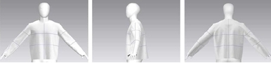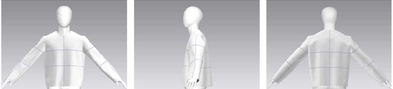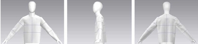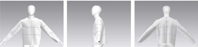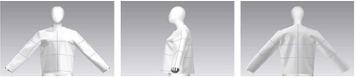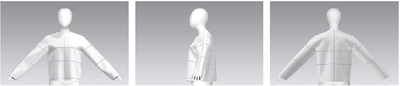 중심사이즈 기준치수를 반영하여 설계된 1차 토르소원형은 피험자에 따라 세미 루즈 핏 또는 루즈핏를 나타내는 남녀 공용 토르소원형으로 적합하다고 평가되었고, 목밑둘레 및 옷길이, 소매길이 외에는 문제점이 확인되지 않았으므로, 본 연구에서는 [그림 1]의 1차 토르소원형을 사용하여 연구를 진행하였다.